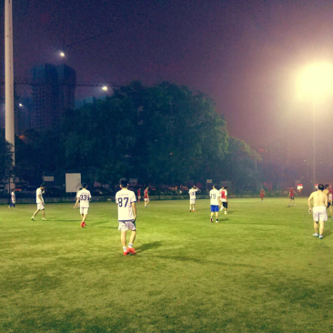 ? ? 當(dāng)我跟著天創(chuàng)公司足球隊一起走進(jìn)新華路的球場時,驀地想起上一次認(rèn)認(rèn)真真踢一場球還是在小學(xué)時代。那時候每天做值日的地方是一塊小草坪,兩端各是貼著草坪邊界種下的一排香樟,稍微居中的兩棵樹的間隙正好被我們拿來當(dāng)做球門,男孩子們每天中午都會在這兒踢到響鈴然后狂奔到教室。當(dāng)時班里大部分男孩子都是巴薩球迷,羅納爾迪尼奧是這群孩子一致的偶像,我也不例外,總會在放學(xué)后一遍又一遍跟著小伙伴們在草坪上模仿小羅的牛尾巴過人和踩單車,仿佛永遠(yuǎn)不會覺得累。2006年巴薩有一場對陣比利亞雷亞爾的比賽,羅納爾迪尼奧在比賽的最后時刻完成了一記精彩的倒鉤射門,這粒進(jìn)球讓我真切地見識到了這項運(yùn)動獨特的魅力,我也開始能理解,為什么我的叔叔們在看球的時候會有那樣忘情的吶喊。