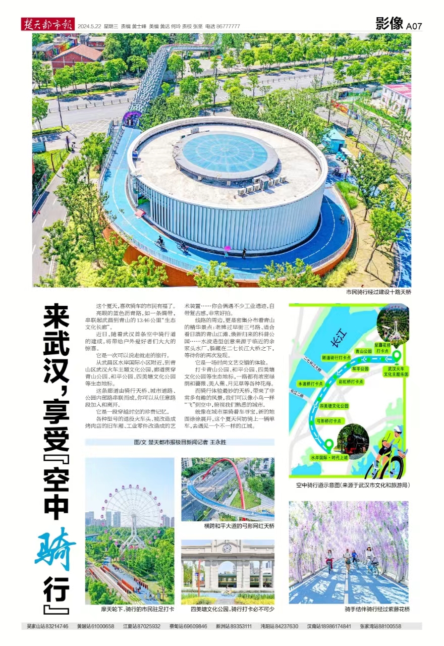 楚天都市報(bào)推出《來(lái)武漢,享受“空中騎行”》專版報(bào)道。